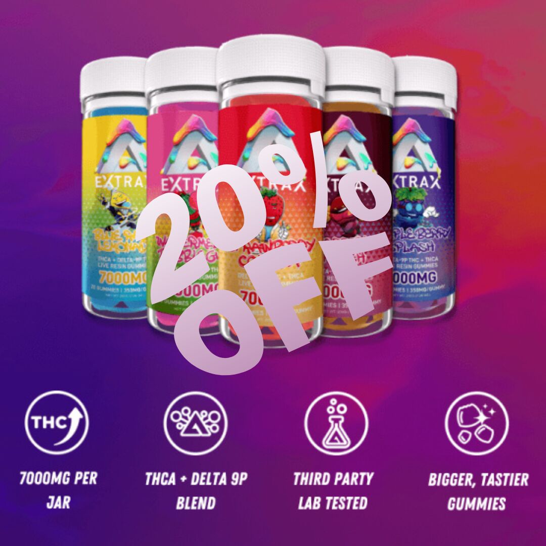 Get ready for an unforgettable ride. The Delta Extrax Adios Blend THCA + Delta-9P Gummies aren’t your average treat — they’re a full-spectrum experience that merges THCA, Delta-9P, HXY9-THC, Delta-8, and Live Resin for a symphony of mind-body euphoria.