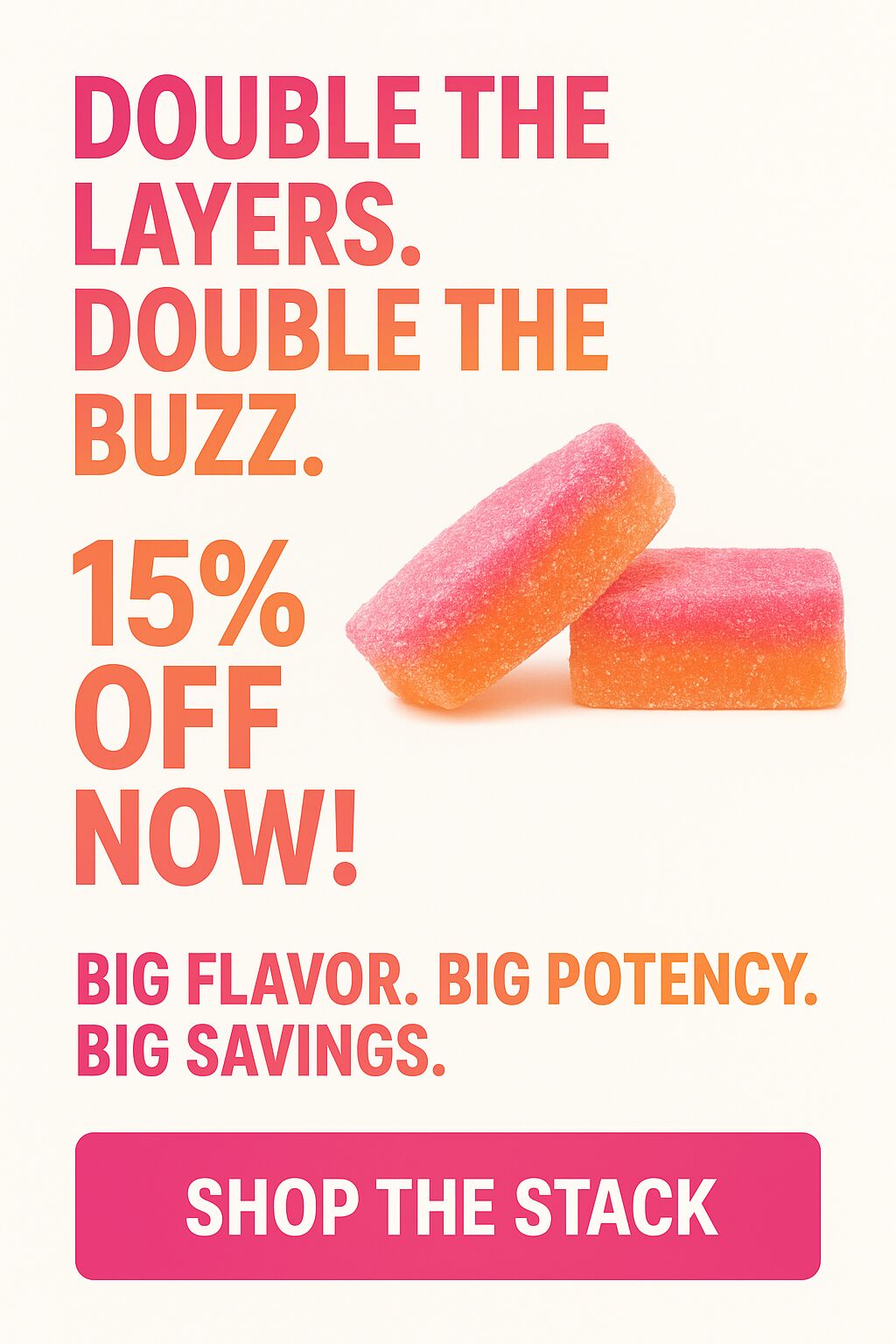 Meet the heavy hitter of gummy perfection — 1000mg per piece of Delta-8, Delta-9, and THCP bliss. Each jar packs 10,000mg of pure potency for any vibe — social or solo. For a limited time, enjoy 15% off and taste the layered magic everyone’s talking about.