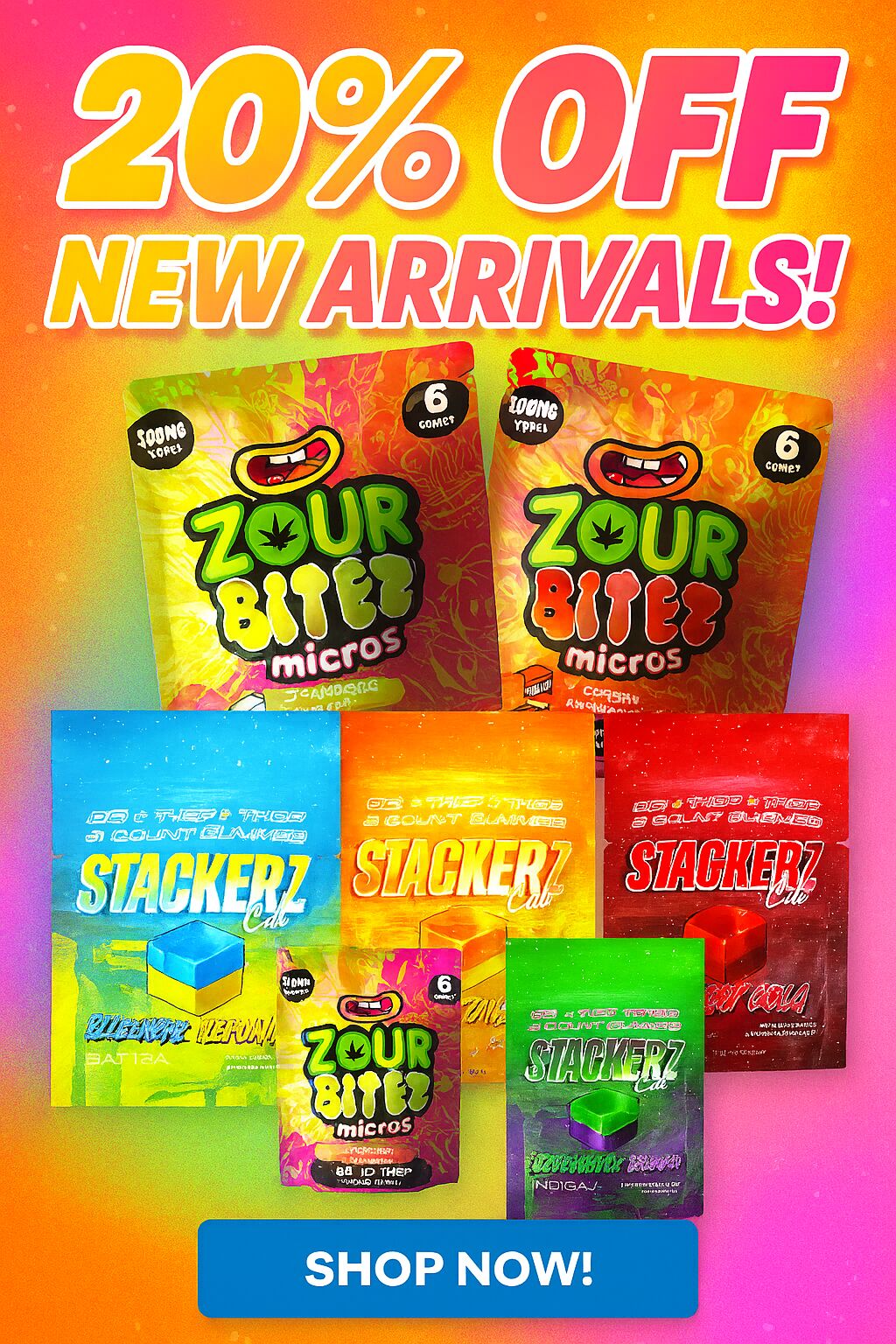 We’re turning up the flavor and the potency with two brand-new arrivals that redefine what hemp edibles can be. Whether you’re vibing with the stacked intensity of Zour Bitez Micros or the strain-specific sophistication of Cali Extrax Stackerz, you’re in for a ride.