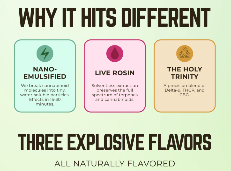 Experience the difference: fast-acting nano-emulsification, premium live rosin, and explosive natural flavors.